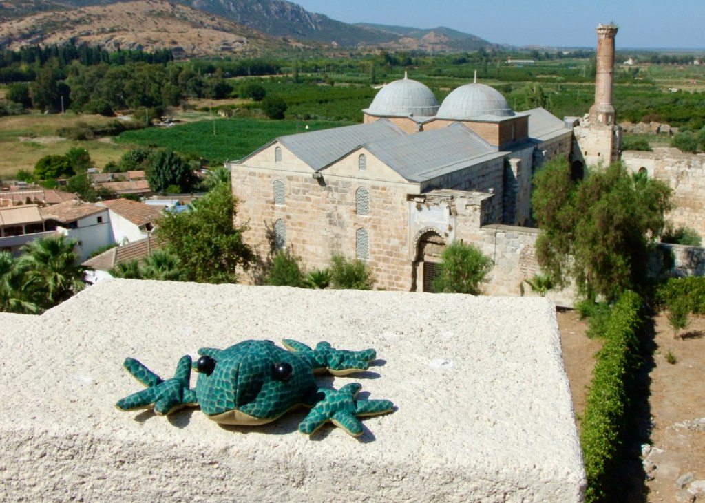 Introducing René, the born again frog, who is our travelling companion. Here he is in Selçuk, in Türkiye, at the ruins of the Church of St John the Evangelist, overlooking the 14th century mosque. This site is close to Ephesus (one of the seven churches in Revelation), and the ruins of the pagan Temple of Artemis (one of the seven wonders of the world).